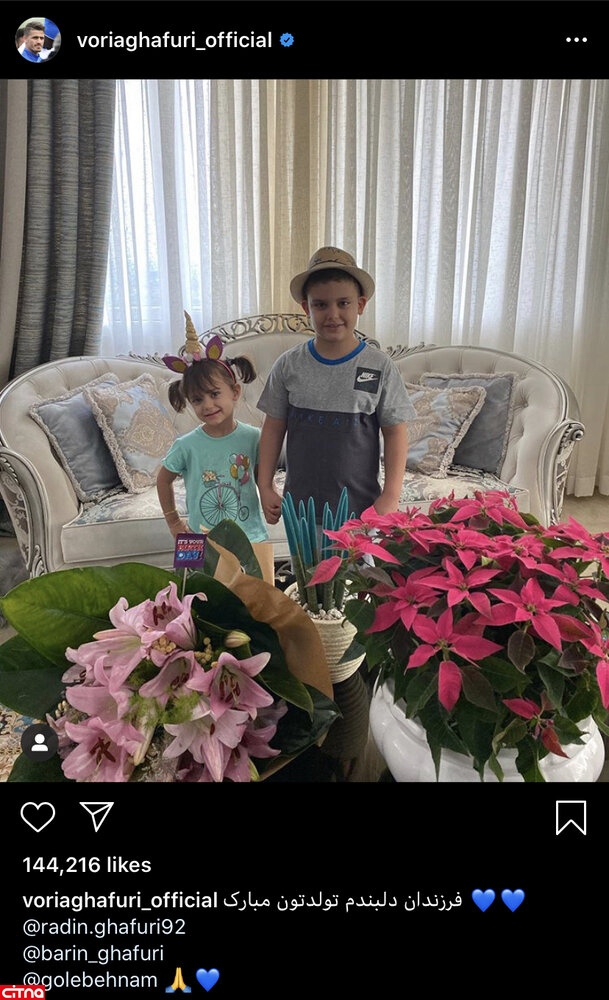 به گزارش سرویس وبگردی سیتنا، وریا غفوری کاپیتان تیم استقلال که این روزها در قرنطینه به سر می برد با انتشار پستی در صفحه شخصی اینستاگرام خود، تولد فرزندانش را تبریک گفت.