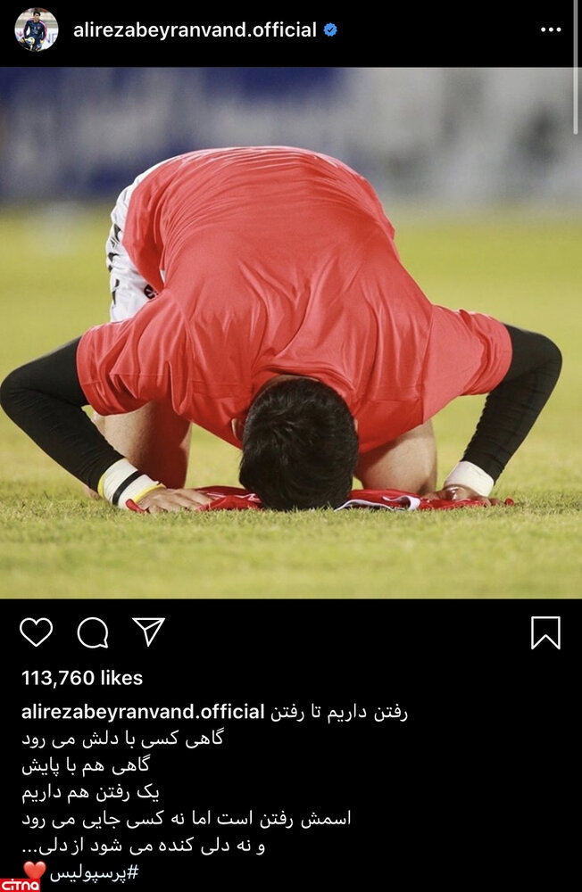 خداحافظی احساسی بیرانوند با پرسپولیسیها در اینستاگرام