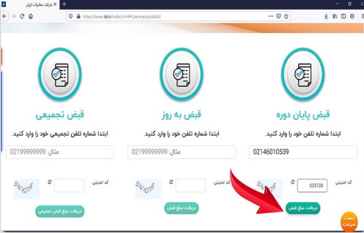 آگاهی از میزان کارکرد و امکان پرداخت قبوض تلفن ثابت در وب سایت شرکت مخابرات ایران