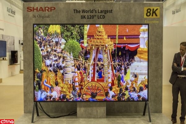 تصاویری از یک تلویزیون ۱۲۰ اینچی شارپ با وضوح ۸K منتشر شده است. ارتفاع این تلویزیون یک و نیم متر است.