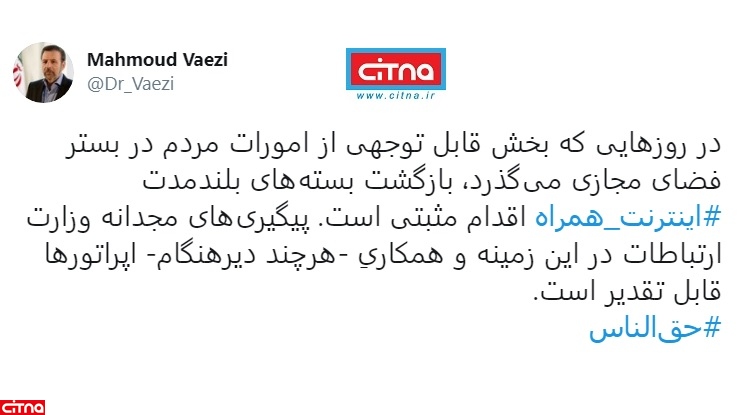 به گزارش سیتنا، دکتر محمود واعظی در توئیتی نوشت:
