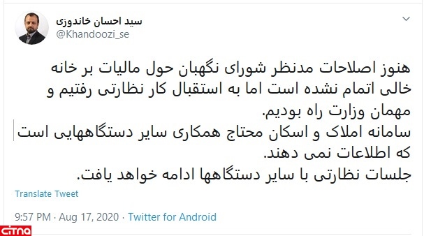 هنوز اصلاحات مدنظر شورای نگهبان حول مالیات بر خانه خالی اتمام نشده است اما به استقبال کار نظارتی رفتیم و مهمان وزارت راه بودیم.