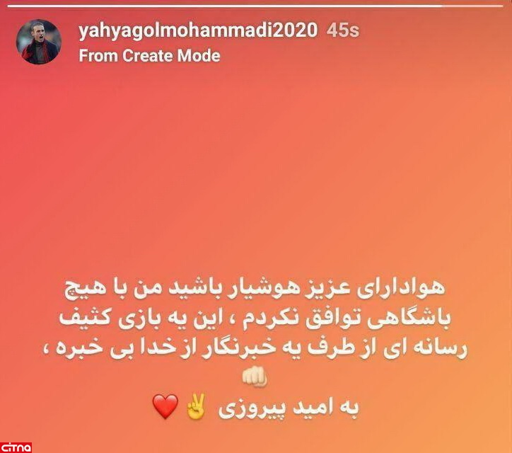استوری یحیی در واکنش به شایعه عجیب؛ بازی کثیف!