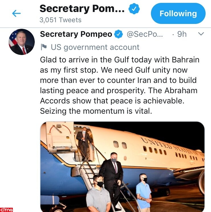 توئیت ضدایرانی پمپئو خطاب به کشورهای خلیج فارس