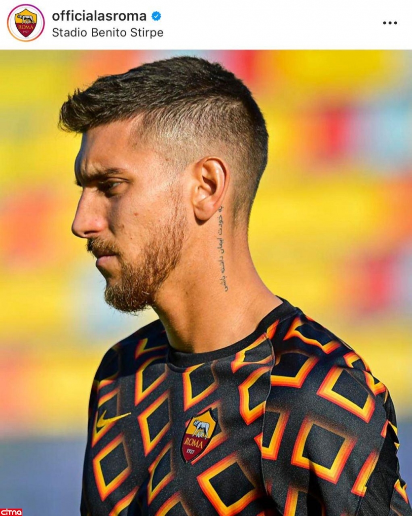 به گزارش سرویس وبگردی سیتنا، صفحه رسمی باشگاه رم در اینستاگرام تصویری از لورنزو پلگرینی بازیکن ایتالیایی خود منتشر کرده است که نشان می دهد این بازیکن جمله ای را به زبان فارسی روی گردن خود تتو کرده است.
