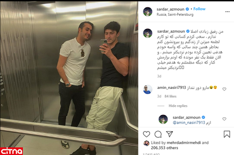 سردار با ذکر این نکته که در زندگی آدم رفیق بازی نیست نوشت: من رفیق زیادی اصلا ندارم، سعی کردم کسانی که تو کارم لطمه میزنن از زندگیم رو بیرونشون کنم بخاطر همین چند سالی که واسه خودم هدفی تعیین کرده بودم نزدیکتر میشم، و الان فقط یک نفر مونده که اونم بزارمش کنار که دیگه مطمئنم به هدفم خیلی نزدیکتر میشم.