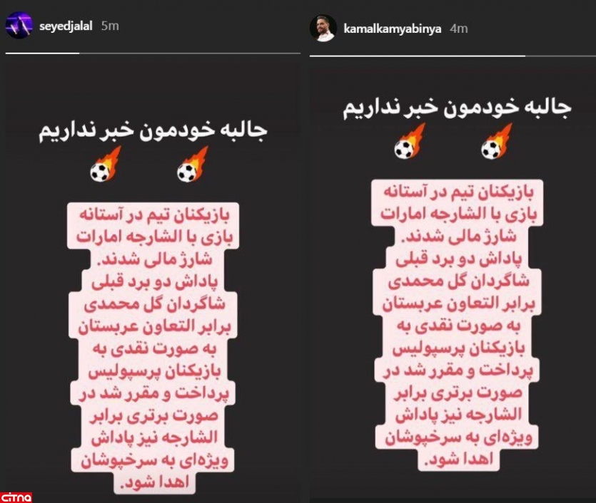 اعلام کردند که پاداش بازیکنان پرسپولیس برای پیروزی در بازیهای گذشته را از طریق حواله به کشور قطر ارسال خواهند کرد تا این پول پیش از بازی با شارجه امارات در اختیار بازیکنان این تیم قرار گیرد.