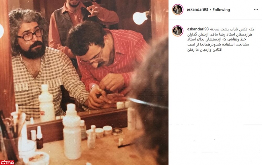 عبدالله اسکندری، گریمور پیشکسوت سینما و تلویزیون ایران، عکسی از زنده‌یاد رضا مافی، خوشنویس و نقاش چیره‌دست کشورمان را در پشتِ صحنه سریال «هزاردستان» منتشر کرد.
