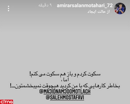 به گزارش سرویس وبگردی سیتنا، ارسلان مطهری خطاب به مجید نامجومطلق و صالح مصطفوی مربیان استقلال استوری شدیداللحنی منتشر کرد و نوشت هرگز آنها را نمیبخشد!