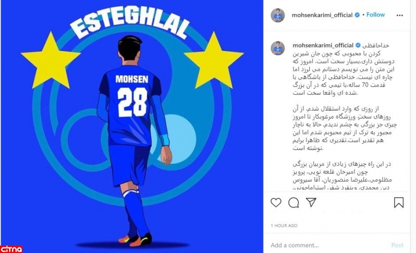 مهاجم سال های گذشته استقلال با انتشار پستی در اینستاگرام از هواداران این تیم خداحافظی کرد.