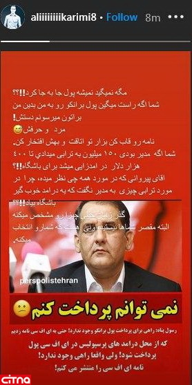 حمله علی کریمی در استوری اینستاگراماش به سرپرست پرسپولیس