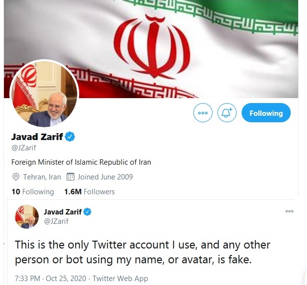 وزیر امور خارجه کشورمان توضیحاتی درباره صفحه رسمی توییترش ارائه داد.