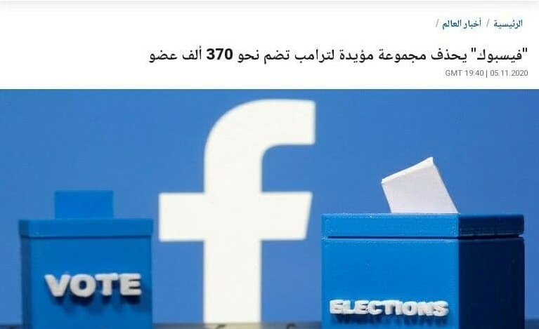 به گزارش سیتنا، شبکه اجتماعی فیسبوک با حذف گروهی متشکل از بیش از ۳۶۵ هزار حامی دونالد ترامپ تاکید کرد: در راستای همسویی با اقدامات فوق العادهای که ما طی این دوره در قبال خشونتهای روزافزون اتخاذ میکنیم، ما گروهی را حذف کردیم که هدفش زیر سوال بردن مشروعیت روند انتخابات بود و ما شاهد فراخوانهای نگران کنندهای از سوی برخی از اعضای آن برای خشونت بودیم.