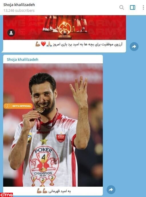 به گزارش سرویس وبگردی سیتنا، شجاع خلیل زاده که به تازگی از جمع پرسپولیسی ها جدا شده است برای این تیم در بازی امروز و همچنین قهرمانی در فصل پیش رو آرزوی موفقیت کرد.