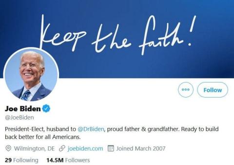 افزودن عبارت رئیسجمهور منتخب به توییتر بایدن