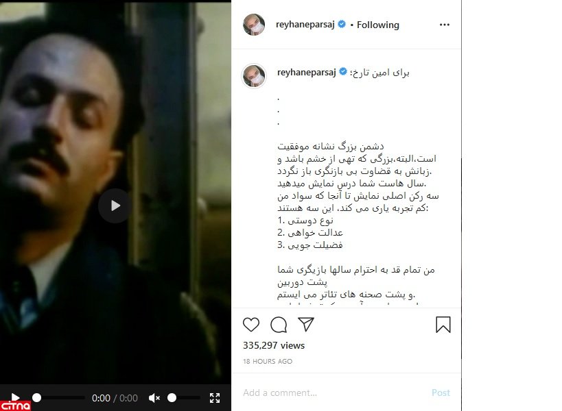 حمله اینستاگرامی ریحانه پارسا به بازیگر پیشکسوت سینما