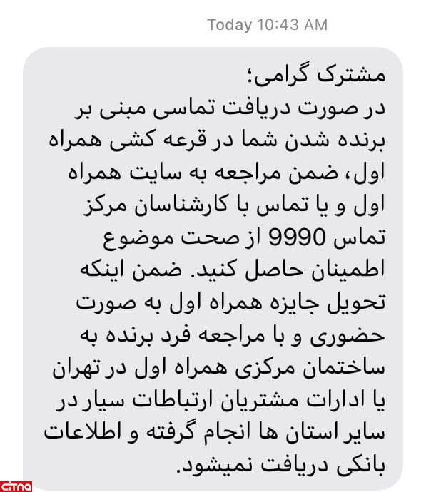 همراه اول در پیامکی به کاربران خود، از تماس کلاهبرداران مبنی بر برنده شدن در قرعه کشی این اپراتور، هشدار داد.