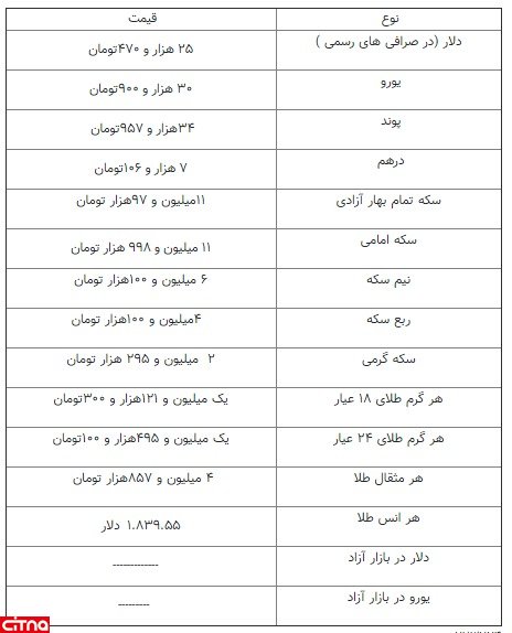 آخرین قیمت طلا، سکه و دلار ۹۹.۰۹.۱۳