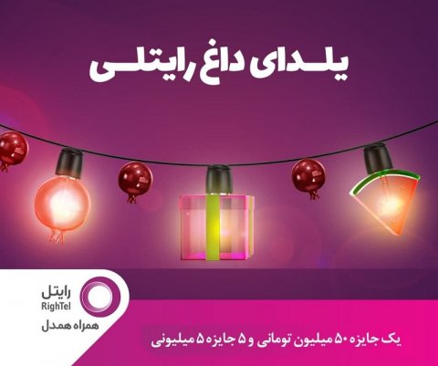 یک جایزه 50 میلیون تومانی و 5 جایزه 5 میلیونی از طریق قرعهکشی و همزمان با شب یلدا به مشترکین رایتل اهدا خواهد شد.