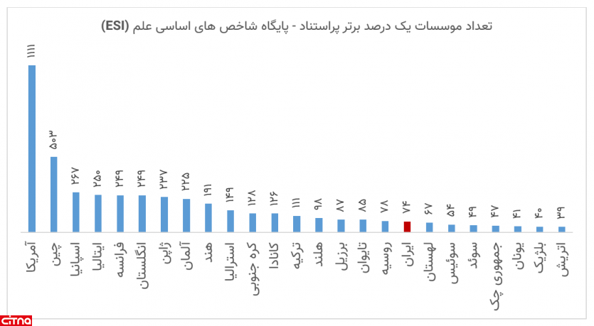شرکت کلاریویت آنالتیکس (آی.اس.آی) پایگاه شاخصهای اساسی علم ( ESI ) را ارائه داده است. اطلاعات ۱۰ سال اخیر کل دنیا در این پایگاه پردازش و نگهداری میشود. یکی از اقلامی که در این پایگاه نگهداری میشود، مؤسسات یک درصد برتر پراستناد دنیا است. اینها عمدتاً دانشگاهها و مراکز تحقیقاتی هستند که بیشترین میزان استنادها به مقالاتشان صورت گرفته است. تعداد مؤسسات فهرستشده در این پایگاه ۶۸۸۸ مورد است.