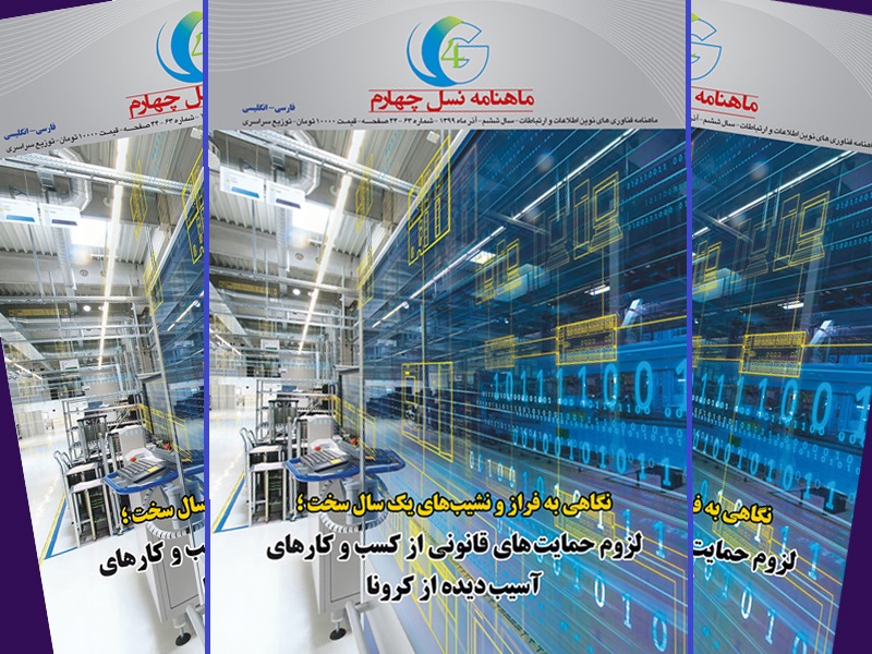 به گزارش سیتنا، شصت و سومین شماره ماهنامه "نسل چهارم" به دو زبان فارسی و انگلیسی، ویژه آذرماه 1399 با تمرکز ویژه بر سرفصل «لزوم حمایتهای قانونی از کسبوکارهای آسیبدیده از کرونا» منتشر شد.