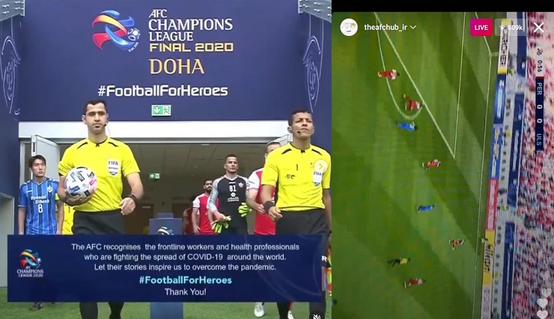 صفحهی اینستاگرام فارسی کنفدراسیون فوتبال آسیا با گزارش عادل فردوسیپور به پخش دیدار امروز تیمهای پرسپولیس و اولسان اختصاص داشت که با حضور 809 هزار کاربران آنلاین در دقایقی از بازی، رکورد پربیننده ترین لایو در ایران شکسته شد و این لایو در بین پنج لایو پربازدید دنیا نیز قرار گرفت.