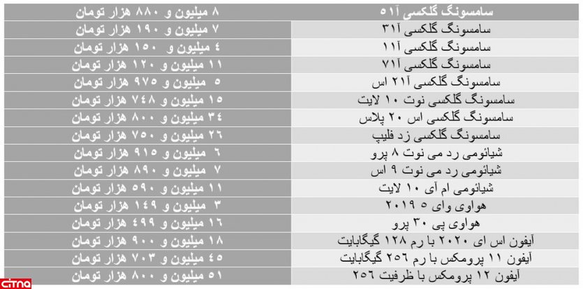 جدول قیمت پرفروشترین گوشیها در روزهای پایانی پاییز