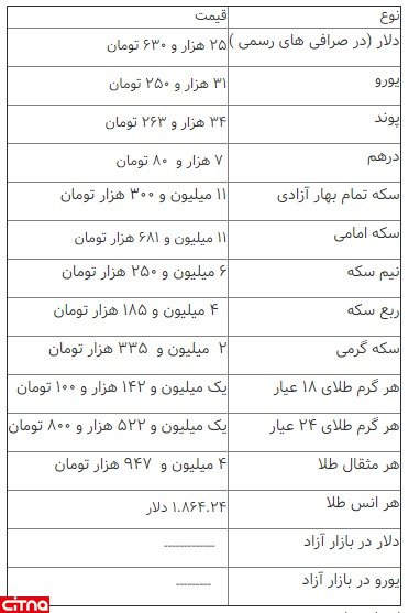 قیمت سکه، طلا و ارز ۹۹.۱۰.۰۳