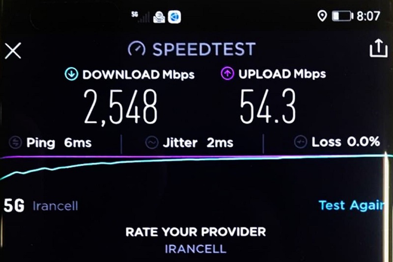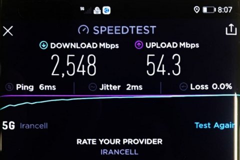 رکورد سرعت اینترنت در ایران شکسته شد؛ ۲.۵ گیگابیت در شبکهی 5G