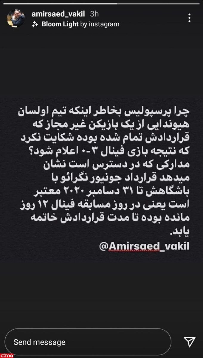استوری وکیل پرسپولیس درباره استفاده اولسان از بازیکن غیرمجاز