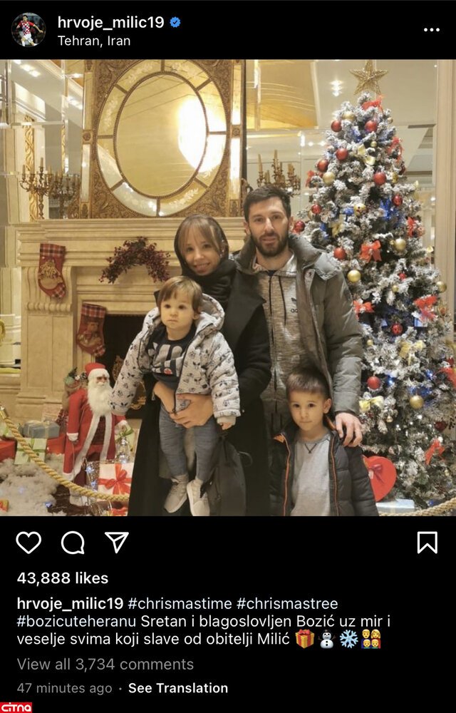 هروویه میلیچ، مدافع چپ تیم استقلال امسال کریسمس را در تهران جشن میگیرد.