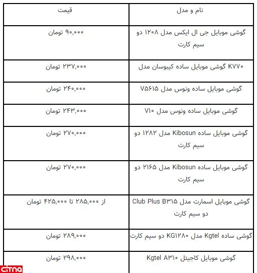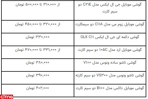 در جدول زیر می توان با برخی از این گوشی های ارزان آشنا شد: