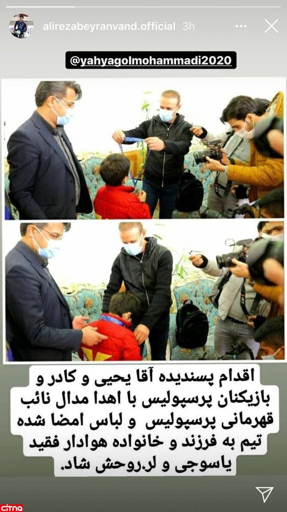 بیرانوند با این استوری از رفتار یحیی گلمحمدی تمجید کرد