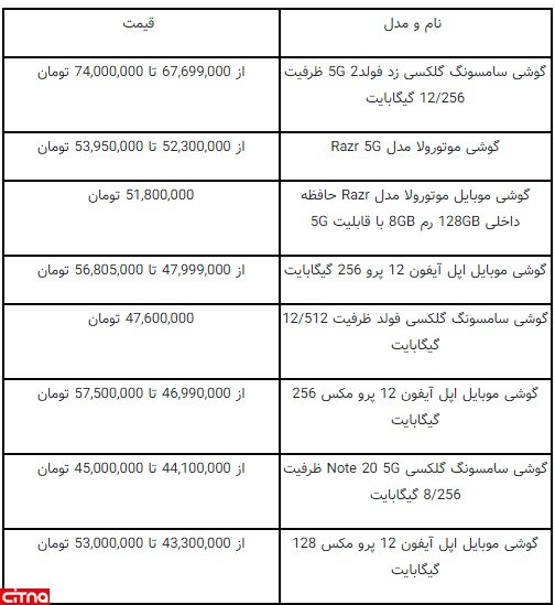 گرانترین گوشی بازار متعلق به برند سامسونگ و مدل Samsung Galaxy Z Fold2 5G 12/256GB Mobile Phone با قیمتی از 67 میلیون و 699 هزار تومان تا 74 میلیون تومان است.