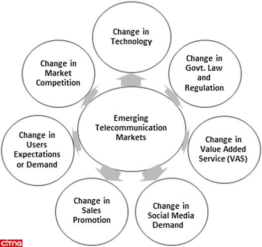 بازارهای مخابراتی نوظهور آنهایی هستند که از تغییر در تکنولوژی، تغییر در قوانین و مقررات دولتی یا تغییر سیاسی، تغییر در خدمات ارزش افزوده، تغییر در تقاضای رسانه اجتماعی، تغییر در تبلیغات فروش، تغییر در رفتار مصرف کننده، تغییر در بازار رقابتی پدید می آیند. تعدادی از ویژگی های بازار نوظهور مخابرات در نمودار 2 نشان داده شده است.