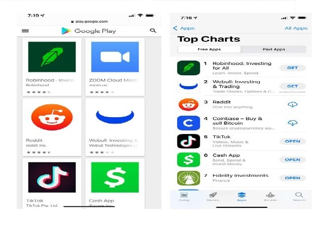 تا به امروز اپلیکیشنهای یوتیوب، فیسبوک، اینستاگرام، تیک تاک، دیزنی پلاس و موارد مشابه در اپ استورهای گوگل و اپل به خصوص در آمریکا در صدر بودهاند، اما چند هفتهای است اپلیکیشن سرمایه گذاری و کارگزاری رابین هود در صدر اپلیکیشنهای در حال بارگذاری در اپ استورهای اپل و گوگل قرار گرفته است.