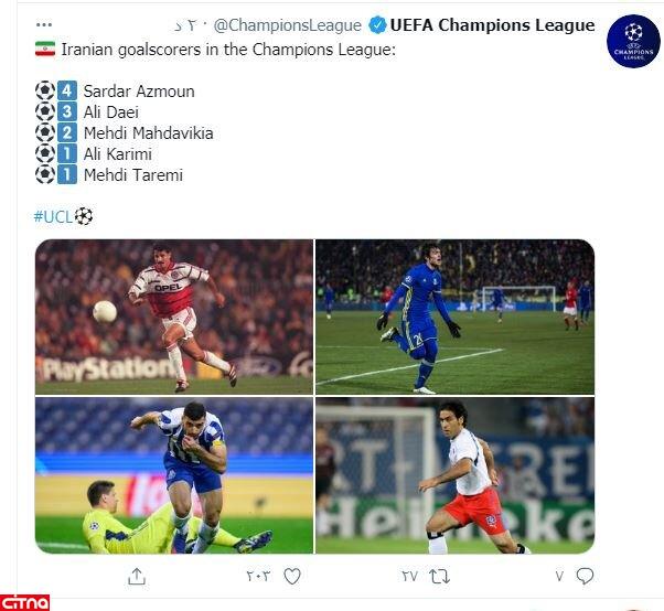 توییت صفحه لیگ قهرمانان اروپا از گلزنان ایرانی