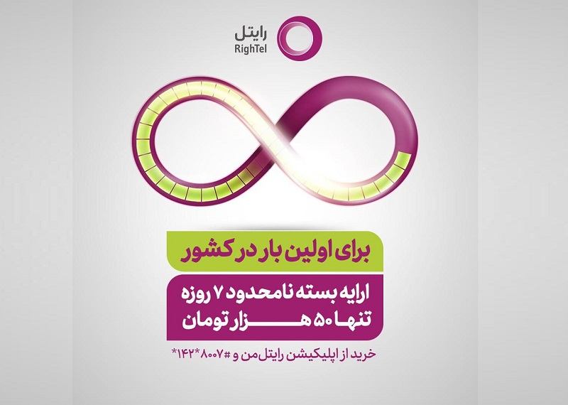 رایتل برای اولین بار در کشور اقدام به ارایه بسته نامحدود اینترنت کرد.