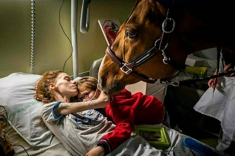 در این عکس، زن بیمار که آخرین نفسهای خود را می کشد، با پسر و اسب خود در حال وداع است. گفته شده است که کادر درمان شرایطی را فراهم کردند که بیمار برای آخرین بار اسب و پسر خود را ملاقات کند.