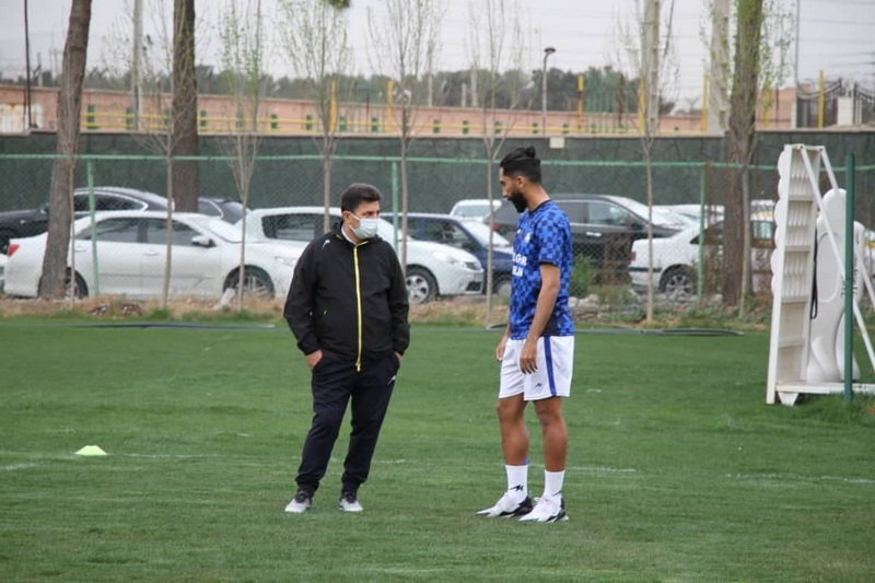 این تصویر صحبت های خصوصی امیرقلعه نویی با فرشید باقری خرید جدید گل گهر را نشان می دهد که احتمالا طی آن سرمربی گل گهر در حال گوشزد کردن نکات مهم سیستم تیم جدید و وظایفی است که هافبک سابق استقلال باید انجام دهد.