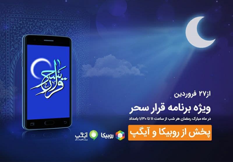 همراه اول با برنامه «قرار سحر» از (ساعت ۱۱ شب تا یک و نیم بامداد) ۲۷ فروردینماه در «روبیکا» و «آیگپ» مهمان شبهای رمضان است.