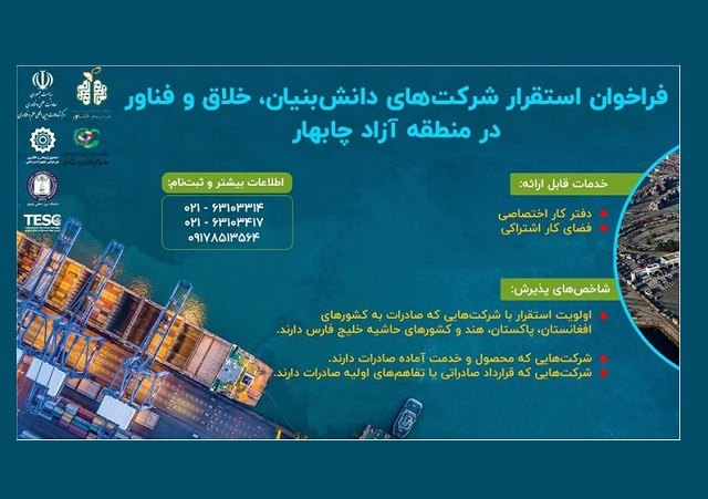 با حمایت معاونت علمی و فناوری، منطقه آزاد چابهار آماده میزبانی از شرکتهای دانشبنیان، خلاق و فناور میشود تا با این کار صادرات محصولات افزایش یابد.