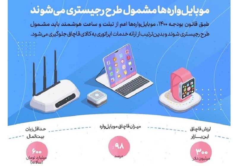 به گزارش ایرنا، دولت مطابق قانون موظف به تکمیل طرح رجیستری و مشمولیت تمامی دستگاههای دارای سیم کارت در سال ۱۴۰۰ است. بر همین اساس، طبق بند ح تبصره هشت قانون بودجه ۱۴۰۰ و همچنین بر اساس آییننامه اجرایی ماده ۱۳ قانون مبارزه با قاچاق کالا و ارز، وزارت ارتباطات و فناوری اطلاعات موظف است کلیه تبلتها و ساعتهای هوشمند بارکدخوان و مبدل ارتباطات ثابت به سیار وارداتی و تولید داخل را در سامانه هوشمند مدیریت تجهیزات سامانهای(همتا) ثبت کند.