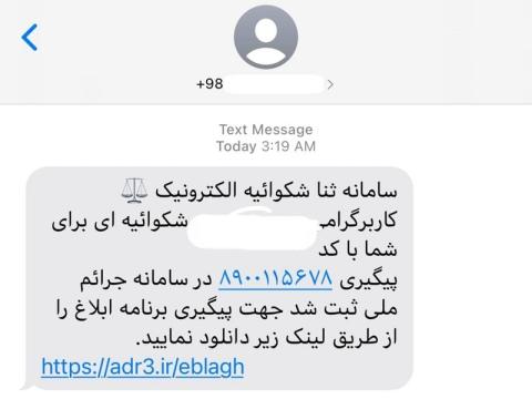 کلاهبرداران پیامکی با این مضمون که «نسبت به حساب کاربری شما در سامانه ثنا در تاریخ ... ثبت شده» را برای کاربران ارسال می کنند و از آنها می خواهند وارد لینک ارسالی شده و بعد از ورود برای مشاهده شکایت، مبلغ مختصری پرداخت کنند. این لینک، درگاه فیشینگ است و اطلاعات حساب شخص کاربر توسط کلاهبرداران به سرقت می رود و منجربه خالی کردن حساب بانکی مالباختگان می شود.