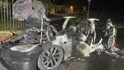مقامات محلی آتشنشانی در یک مطلب فیسبوکی که بعدا آن را حذف کردند گفتند که «یک تسلا آتش گرفت» و آنها برای اطمینان از خاموش شدن کامل آن، اقدام به خنک کردن باتریها کردند.
