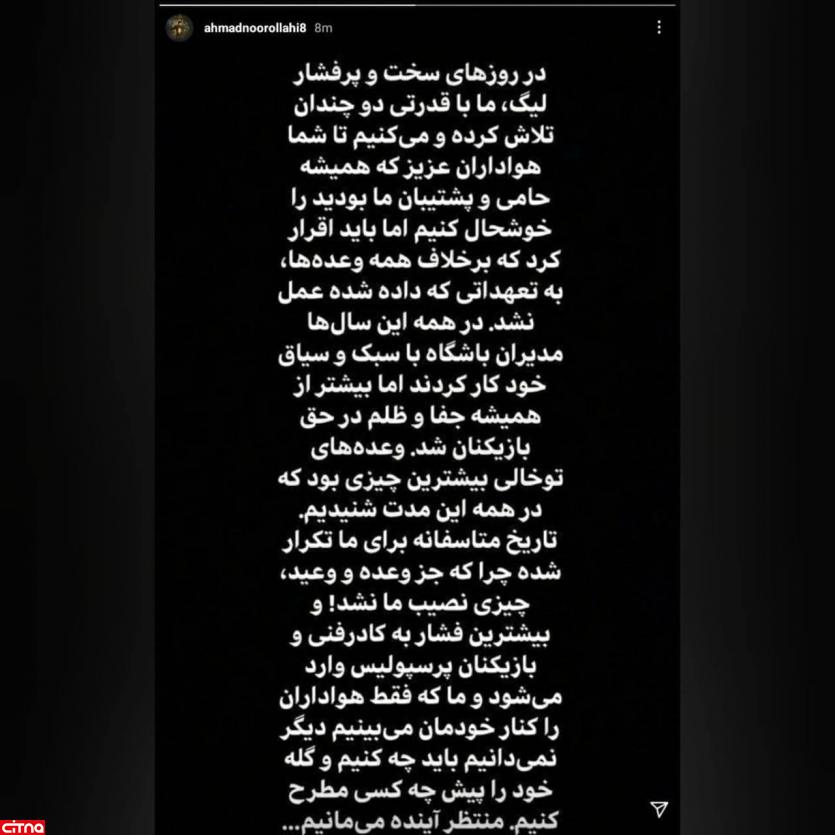 استوری اعتراضی پرسپولیسیها علیه مدیریت