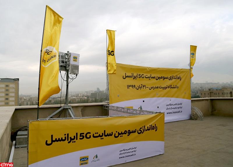 پس از راهاندازی نخستین سایت 5G در پژوهشگاه ارتباطات و فناوری اطلاعات واقع در خیابان کارگر شمالی تهران، دومین سایت 5G در ساختمان مرکزی ایرانسل راهاندازی شد. سومین سایت 5G ایرانسل که برخلاف دو سایت داخل ساختمان، نخستین سایت خارج از ساختمان نسل پنج ایرانسل بود، 22 آبان ماه 1399، در محل دانشکده مهندسی برق و کامپیوتر دانشگاه تربیتمدرس راهاندازی شد و امکان استفاده عموم مشترکان ایرانسل، به وسیله گوشیهای موجود در بازار ایران با قابلیت پشتیبانی از 5G و به علاوه، استفاده دانشجویان و پژوهشگران این دانشگاه از آخرین نسل فناوری تلفنهمراه، در آزمایشگاه 5G این دانشگاه را فراهم کرد.