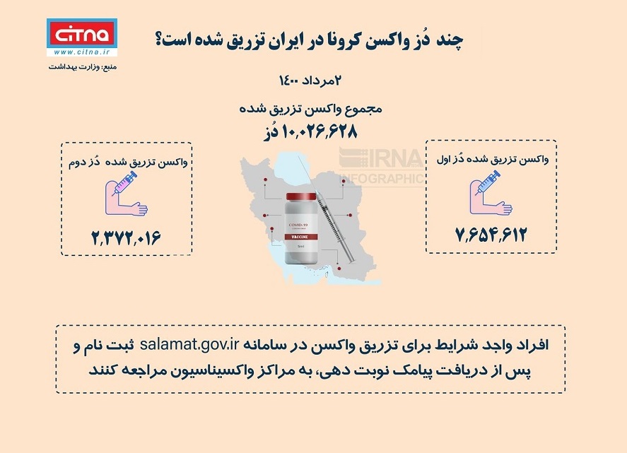 اینفوگرافی| تاکنون چند دُز واکسن کرونا در ایران تزریق شده است؟