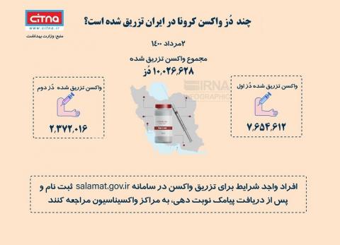 با شتاب گرفتن روند واکسیناسیون در ایران، تزریق واکسن از مرز ۱۰ میلیون دُز گذشت.