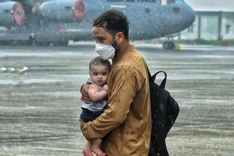 به تازگی تصویری در فضای مجازی دست به دست میشود که در آن پدری افغان زیر باران کودک خود را در فرودگاهی در هند در آغوش گرفته است و با نگاهی ملتسمانه، به جهتی خارج از کادر نگاه میکند. این عکس در نگاه اول حتی اگر حوادث اخیر افغانستان را هم نادیده بگیریم، آنقدر قدرت دارد که میتواند احساسات مخاطب را برانگیزد.